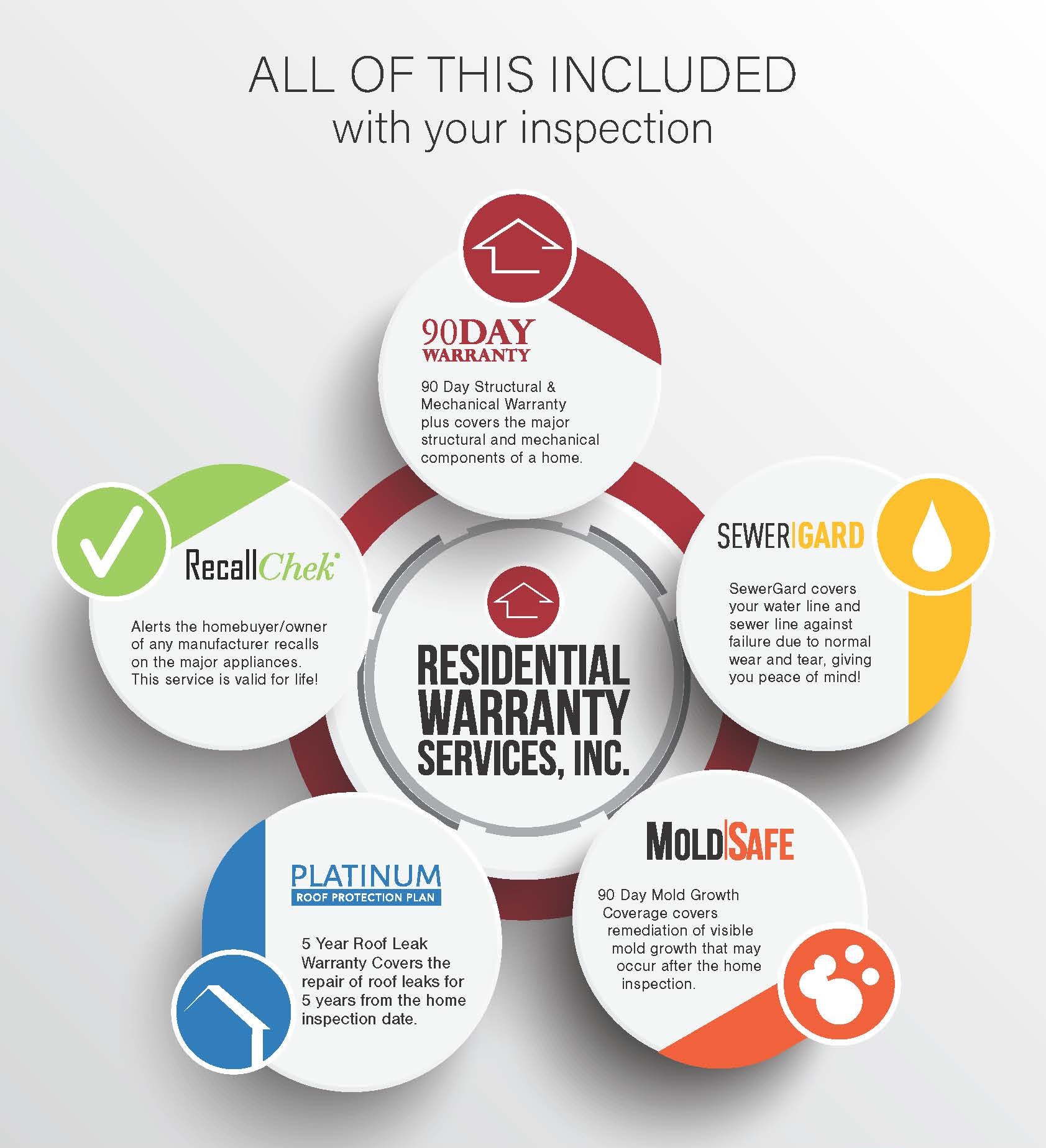 A home inspection is a professional opinion based on less-than-complete information. It's a little like getting a check-up from your doctor. It improves your odds of good health but there is no guarantee or warranty. Some problems can only be discovered by living in a house; they cannot be discovered during a home inspection. For example, some shower stalls leak when people use the shower but don't leak when you simply turn on the shower. Some roofs and basements only leak when specific weather conditions exist. Some problems will only be discovered when carpets are lifted, furniture is moved or finishes are removed. As such, I cannot and do not offer a warranty on the house. Home warranty programs are available from others. I am, however, partnered with RWS, Inc and a complimentary 90 day Structural and Mechanical Warranty is included with a paid inspection.